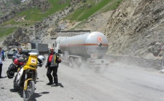 18.06.2015 – Heute gings von Kalaikhum nach Khorog, immer den Pandj entlang und stetig bergauf, bis zu ca. 2200 m in Khorog. Das Frühstück war okay und es gab leider keinen Milchreis, sondern mal wieder Spiegelei, Brot Tee und Wasser. Aber absolut okay und wir machten uns so gegen Neun …