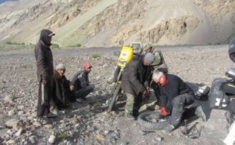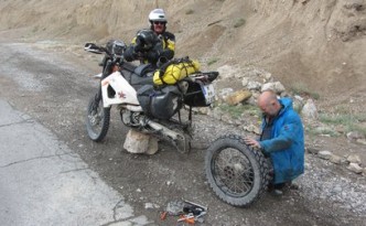 26. Juni – Heute haben wir zwei Viertausender Pässe und den Grenzübergang nach Kirgistan auf dem Zettel. Doch erst einmal kommt das Frühstück, diesmal mit Andy;-) Tobias war füh hoch und durfte sich im Uazzik des Besitzers der Lodge als Trucker fühlen: Anschließend wird gepackt und ich genieße die trockenen …