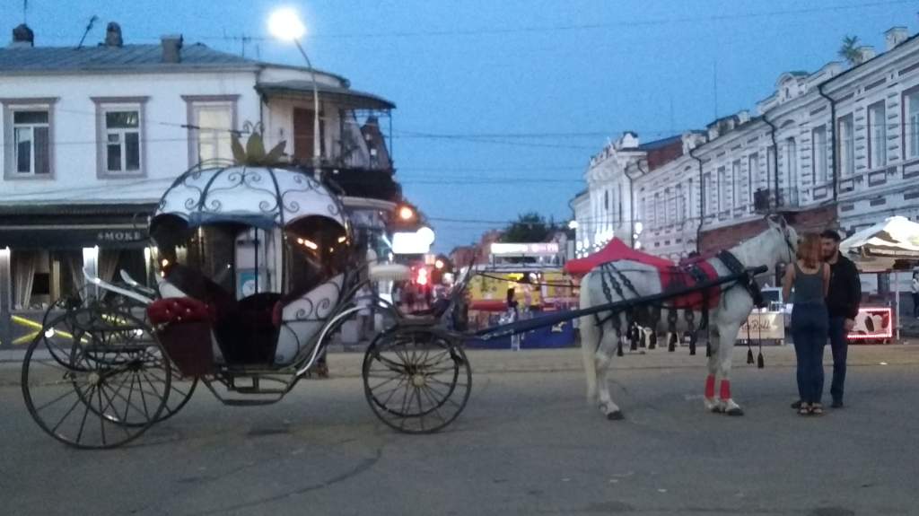 Am Abend ging es noch etwas durch die Stadt. Feiertagsstimmung, alle laufen durch die Straßen, es gibt Zuckerwatte. Auf der Straße vor dem Hotel drönen die getunten Motoren. Die Bässe der lokalen Top 10 pumpen mit richtig Druck aus den Autos – Festival-Niveau. Hinten ruft der Muezzin zum Gebet. Vor dem Hotel stehen fette Range Rover neben alten Ladas. Mir kommt es eher vor wie in den Stans als Russland. Ich fühle mich dennoch wohl. Auch wenn meine serbischen Mitreiter sich eher unsicher fühlen.