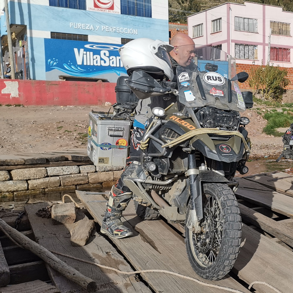1.300 Meter: Nebel; 2.000 Meter: Regen auf der Straße des Todes; 4.500 Meter: 15 Zentimeter Hagel; Sightseeing mit dem Motorrad quer durch La Paz; Fähre über den Titicaca-See. Ein abwechslungsreicher Tag.