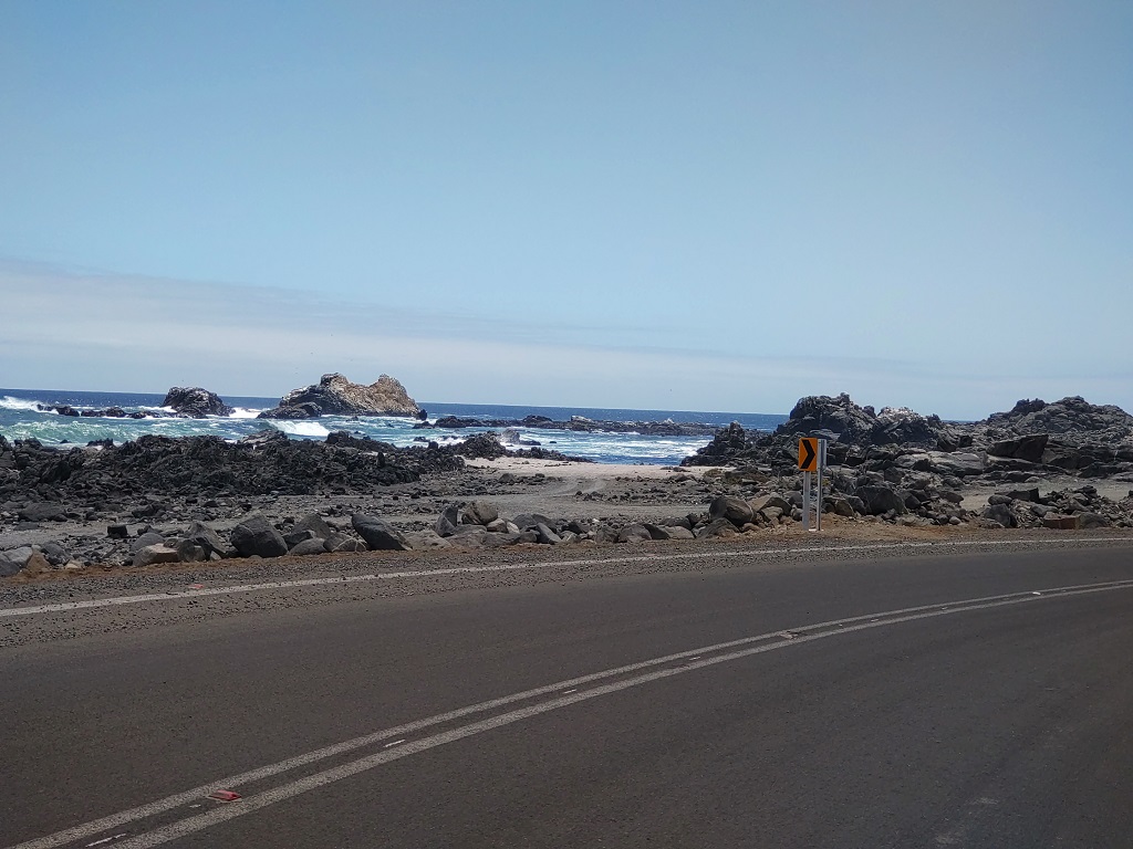In Taltal machten wir eine Tank- und Mittagspause und beschlossen dann, doch bis Antofagasta zu fahren. Die Ruta 1 ist durchgehend asphaltiert, was aber dem Fahrspaß eher zu Gute kam, weil es viele schöne Kurven gab, die das Motorradfahrer Herz höher schlagen ließen. Dazu dann der phänomenale Ausblick auf die überwiegend felsige Küste. Einfach der Hammer.