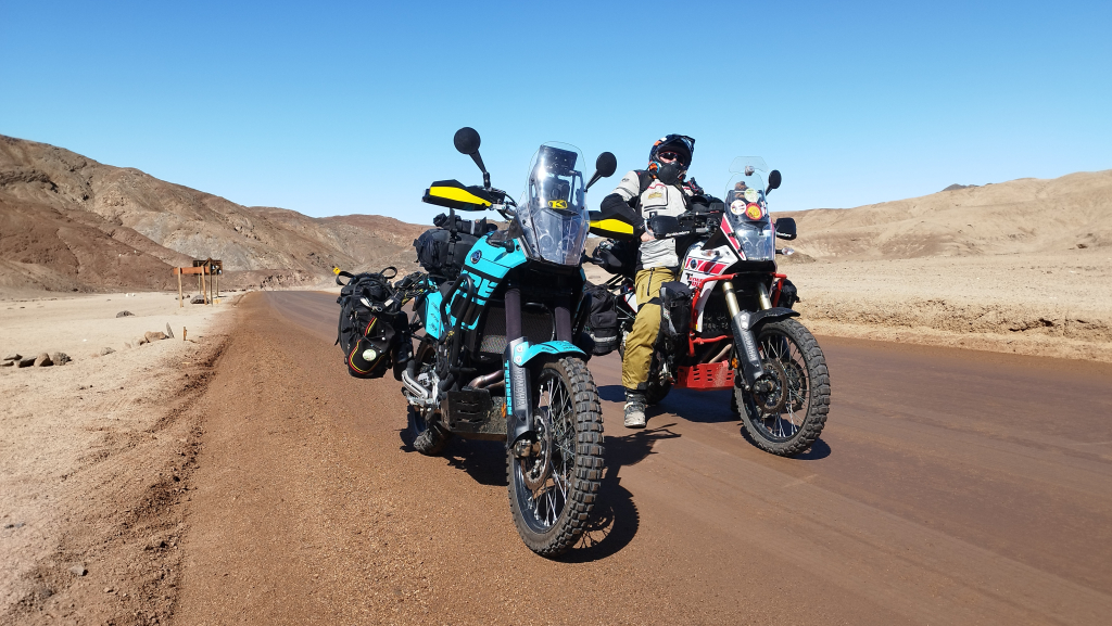 Nach dem Frühstück die Moppeds gesattelt, vollgetankt und rauf auf die Piste. Rein optisch sah es aus als wenn wir auf einer Eisfläche fahren, aber tatsächlich war der Untergrund trocken und hatte ausreichend Gripp für gemütliche 70 km/h.