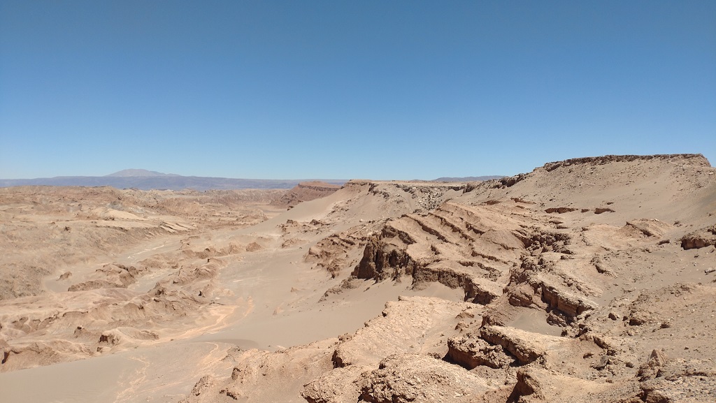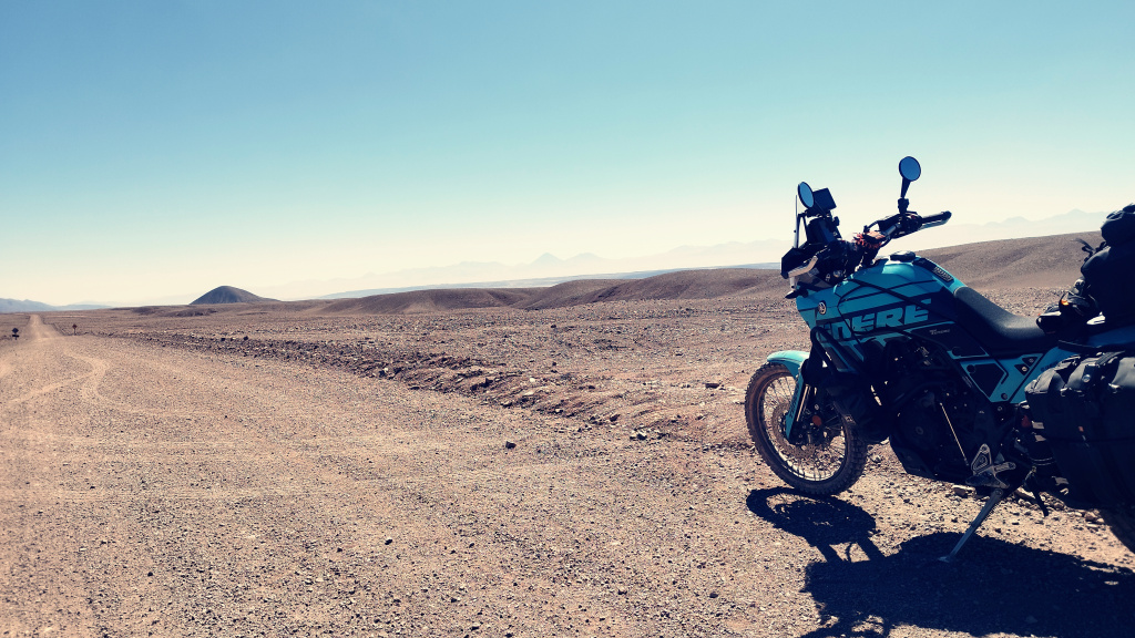 Die Nächte in der Atacama sind lausig kalt, gerne mal unter dem Gefrierpunkt. Aber da machte ich mir keine Gedanken, Isomatte und Daunenschlafsack sei Dank. Aber es kam anders… Gefühlt kurz nach dem Einschlafen bin ich wieder aufgewacht, weil es unter mir plötzlich so hart war. Ich hatte einen „Plattfuß“ an der Isomatte. Schöner Mist, weil aufpumpen hätte nichts gebracht, also das Beste draus machen und versuchen zu schlafen. Naja, egal wie ich mich auch gedreht habe, nach gefühlt fünf Minuten tat alles weh. Das war im wahrsten Sinne des Wortes eine harte Nacht. Immerhin habe ich nicht gefroren, obwohl es unter null gewesen sein muss, weil ein Wassertropfen am Mundstück vom Trinkrucksack gefroren war.
