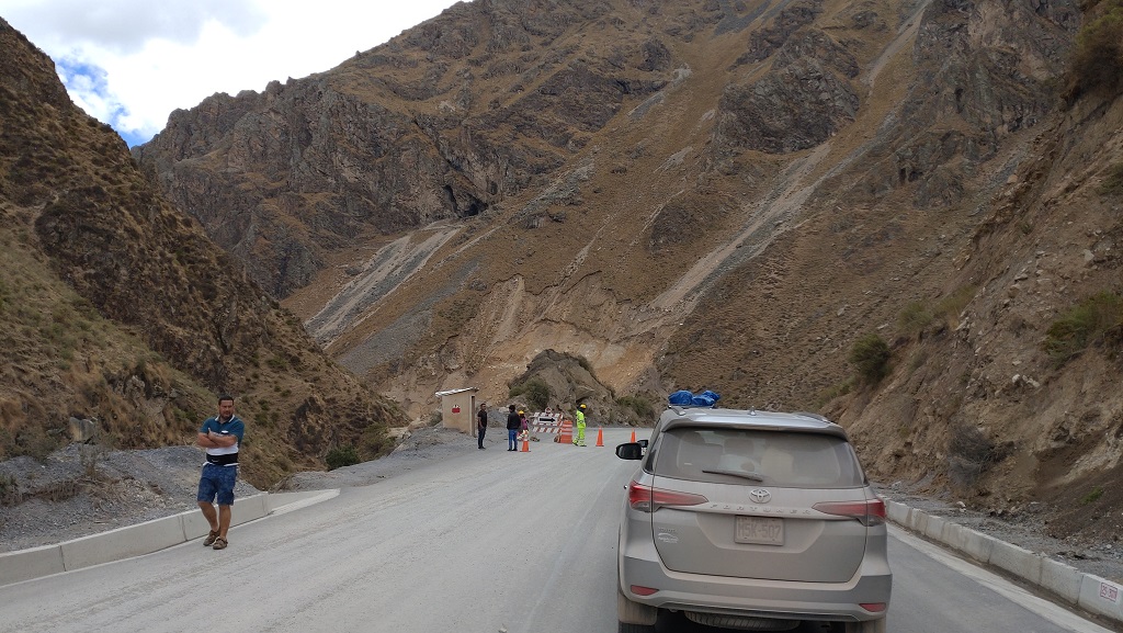 Kurz vor Canta ging es dann relativ schnell bergab in ein enges Tal. Hier hatten wir dann das erste Mal die Gelegenheit, was es heißt wenn an einer Baustelle das Schild „Pare“ (Warten) gezeigt wird. Letztlich standen wir dann für zwei Stunden vor diesem Schild. Als es endlich weiterging war deutlich erkennbar, dass das Schild nicht zum Spaß war, sondern hier in der Baustelle mächtig geackert wurde, und zwar nicht mit Spitzhacke und Schaufel.