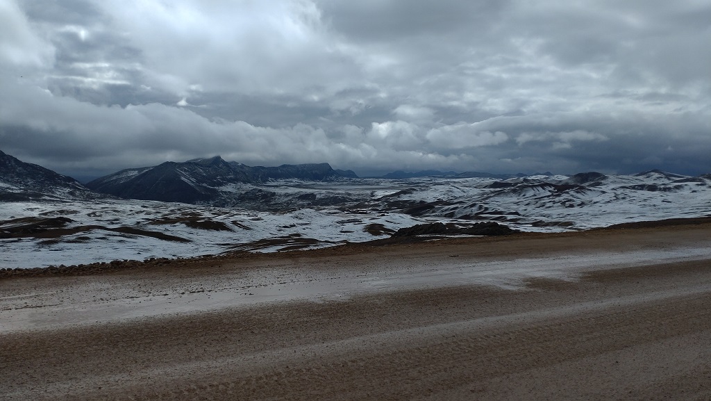 Das kann heiter werden, doch zum Glück war die Strecke ab Huayllay eine frisch geschobene Piste, wo nur an der Oberfläche etwas Matsch war (okay, die Moppeds sahen danach aus wie sau) und sich daher gut fahren ließ.