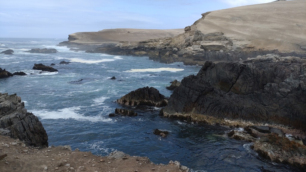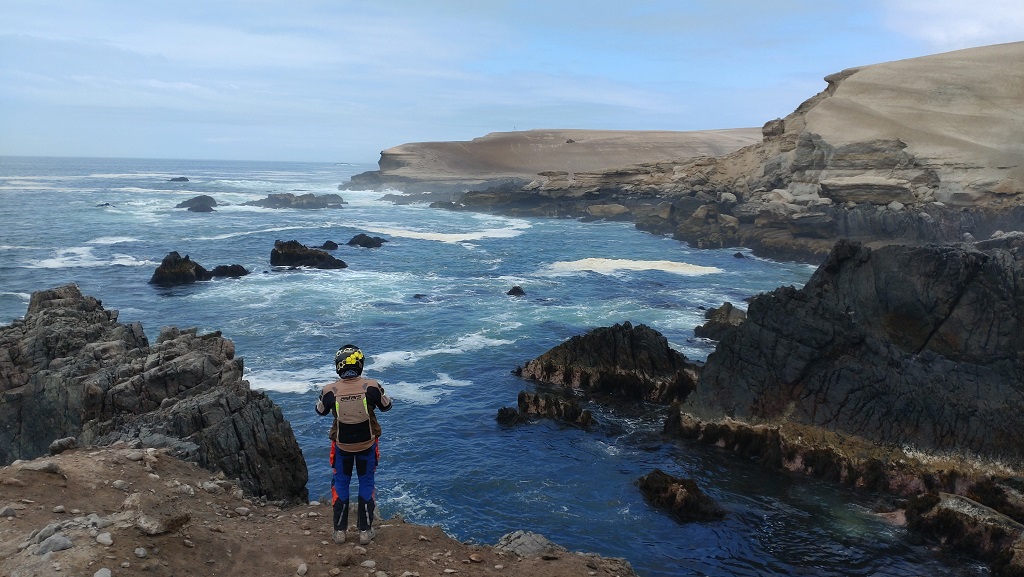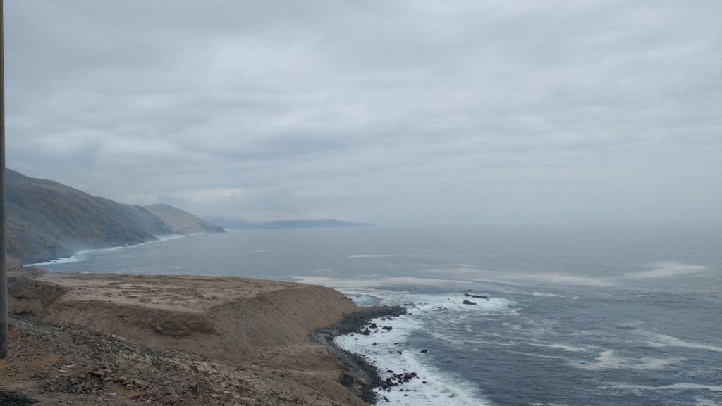 Am nächsten Morgen geht es dann wieder zeitig los, kurz nach sieben laufen schon die Motoren. Heute werden wir den wohl spektakulärsten Abschnitt von der Panamericana del Sur unter die Räder nehmen. Teilweise geht es direkt am Pazifik entlang, teilweise auf vielleicht 100 bis 200 m Höhe an einer Steilwand, die hoch über uns aufragt und ebenso steil zum Meer hin abfällt. Schon spektakulär das Ganze. Dazu dann das regelmäßige überholen der vielen Lkw, und immer wieder der Blick auf die Küste.
