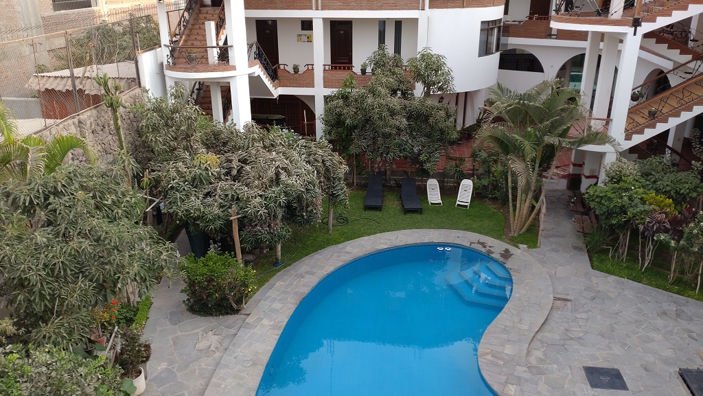 Das Hotel in Nasca ist wunderschön, hat einen Pool, den wir natürlich nutzen und die Abkühlung genießen. Zu Abend essen wir in einem guten Restaurant und genießen einen guten Wein zum Essen. So gegen Acht sind wir wieder im Hotel und verschwinden auch bald im Bett.