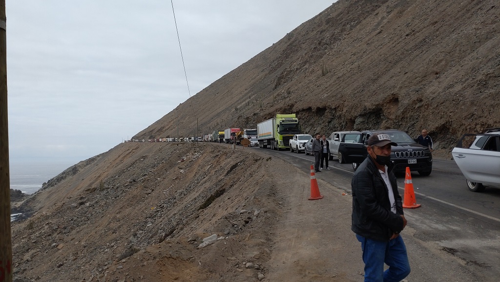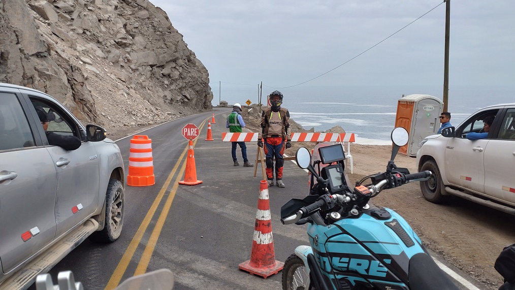 Außerdem gibt es hier viele Baustellen, weil die Peruaner diese Hauptverbindungsstrecke regelmäßig instand setzen oder die Ortsdurchfahrten teilweise komplett erneuern. Meistens kündigen sich die Baustellen durch Lkw-Staus an. Für uns dann das Zeichen, dass wir bis zum Pare-Schild vorfahren. Wir haben also fast immer die Pole-Position!