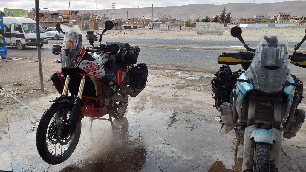 Dann geht es zum Endspurt nach Tacna. Am Ortseingang lassen wir noch schnell die Moppeds waschen und dann suchen wir ein Hotel. Ich hatte vier Wegpunkte im Navi, aber das Navi hat uns mal wieder richtig merkwürdig durch Tacna geführt, manchmal denke ich, es kann keine Karten lesen.
