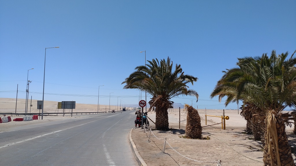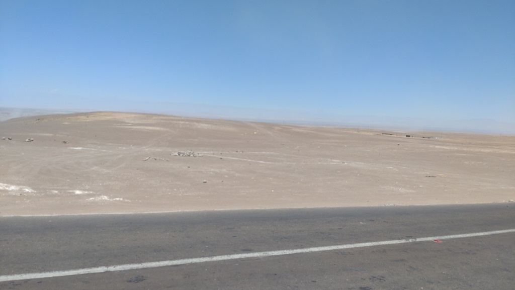 Danach gings es erst einmal nach Arica, wo wir an einer Tankstelle eine Essen- und Kaffeepause machten. So gegen 13:00 Uhr Ortszeit sind wir dann weiter. Wir hatten noch gut 300 km bis zur nächsten Tankstelle und dem Ort, wo wir übernachten wollten. Durch die Atacama Wüste führt hier oben nur eine einzige Straße, die aber super ausgebaut ist. Das einzig störende ist hier der ziemlich starke Wind, der von der Küste her weht.