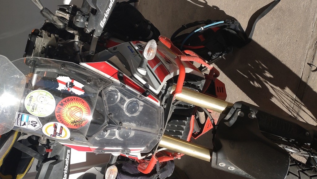 Heute lief es anders als gedacht. Ober besser gesagt, der geplante Start um acht Uhr fiel aus. Wir waren gegen sieben beim Frühstück und danach haben wir unsere Sachen gepackt und sind zu den Motorrädern. Bei aufladen meiner Packtasche bemerkte ich, das irgendwas anders war.