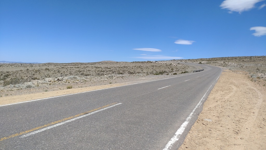 Die ersten hundert Kilometer waren bester Asphalt, so konnten wir einiges an Zeit gut machen. Die Landschaft war wie die letzten Tage, Wüste, immer wieder mit grünen Sprenkeln durchsetzt. Die Temperatur war noch angenehm, aber der Wind nahm zu, war allerdings nicht so schlimm wie gestern.