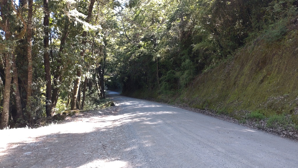 Dann geht es los, zunächst am Lago Villarica entlang, dann biegen ab auf eine kleine Straße, die uns entlang des Lago Calafquen führt. Kurz darauf geht es dann auf Schotter weiter. Bei mir läuft es nicht so rund, im Laufe des Morgens kommt Übelkeit auf, aber ansonsten geht es noch. Auf der Schotterpiste wird mir dann richtig schlecht, also anhalten und erleichtern. Tobias ist erst einmal weitergebraust, aber ich weiß, spätestens an der nächsten Abzweigung wird er warten. Danach ging es dann besser und auch das Fahren fiel wieder leichter.