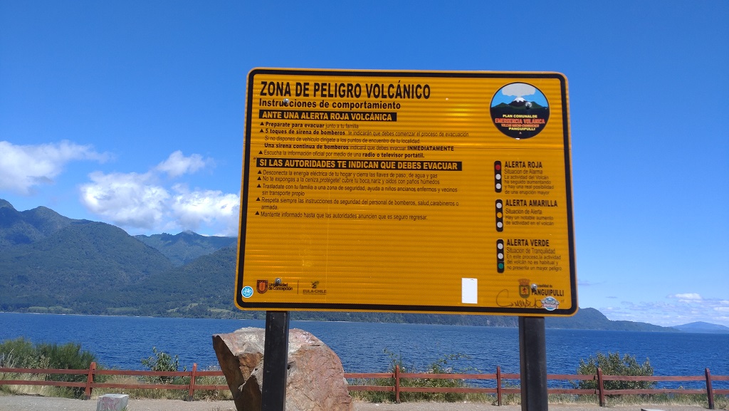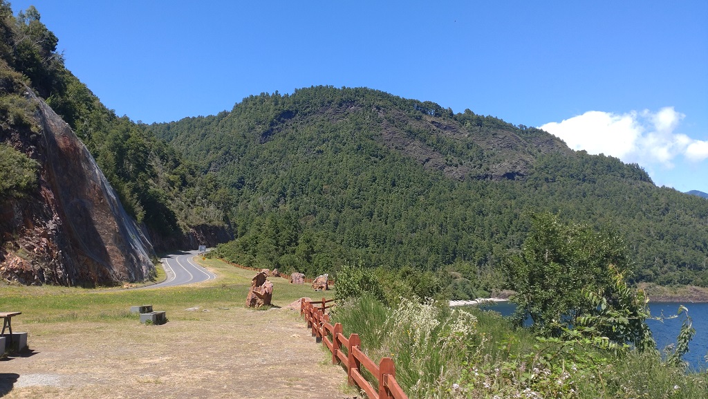 Außerdem mochte ich auch wieder ein paar Fotos machen. Am Ende der Piste hat dann Tobias auf mich gewartet. Wir haben dann zunächst die Strecke bis Panguipulli abgesteckt. Bis dahin ging es an einem schönen See entlang, auch hier wieder tolle Ausblicke.