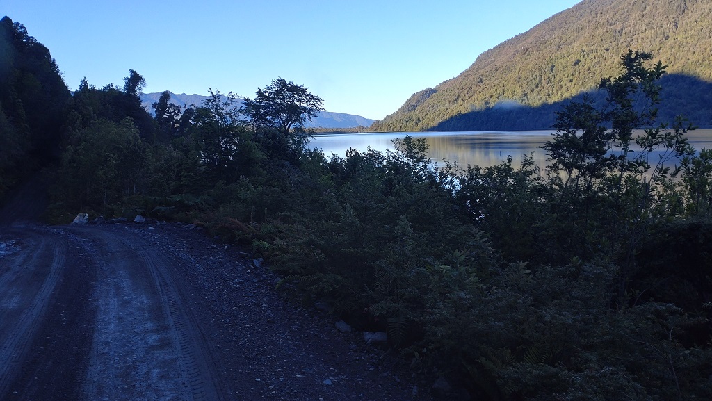 Es war bis kurz vor Chaiten eine Piste und so, wie man sich die Carretera Austral vorstellt. Allerdings war man hier schon mit schwerem Gerät dabei, die Piste zu verbreitern und wahrscheinlich auch zu teeren. Gut, dass wir nicht in der Nacht weiter gefahren sind. Auf dem weiteren Weg sahen wir an einigen Parkplätzen etliche der Autos stehen, die mit uns auf der Fähre waren. Allerdings haben die es wohl etwas bequemer und wärmer als wir gehabt. Dafür haben wir in der Morgensonne die schöneren Eindrücke sammeln können.