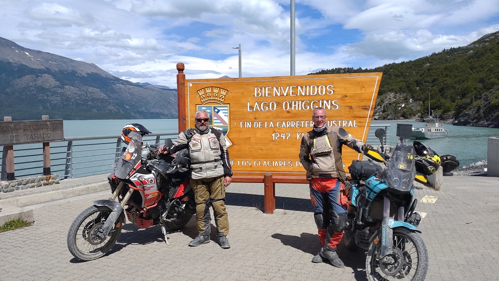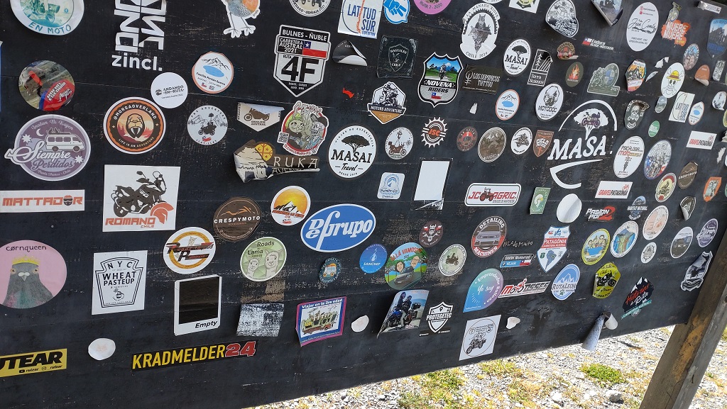 Doch bevor wir einzogen sind wir noch schnell zum offiziellen Ende der Ruta 7, ein paar Kilometer weiter südlich gefahren. Dort haben wir dann sozusagen das Siegerfoto geschossen, oder besser gesagt, ein netter Polizist der dortigen Grenzschutzstation war so freundlich uns abzulichten. Es war schon etwas Besonderes, hier am Ender der Straße zu stehen. Für mich ging war es die Erfüllung eines Traumes, einmal mit dem Motorrad die Carretera Austral bis zum Ende zu fahren. Dann noch die Sticker auf das Schild geklebt und wir sind zurück zu unserem Chalet gefahren.