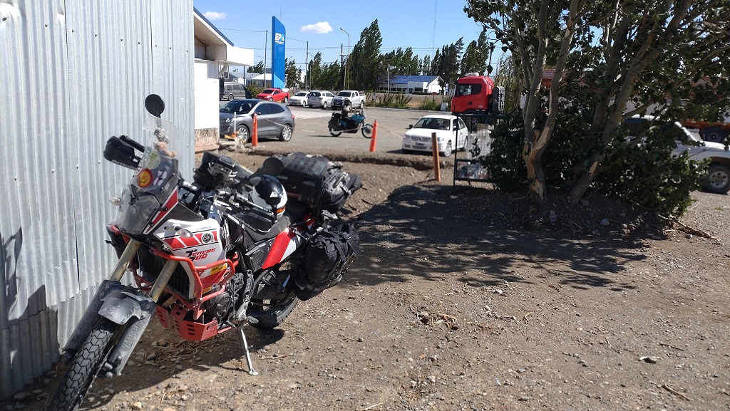 In Rio Gallegos wollten wir eigentlich gucken, ob wir irgendwo einen neuen Schlauch für mich auftreiben können und vielleicht auch Öl wechseln können. Wir waren immerhin schon gegen ein Uhr dort. Leider hatten alle Läden, die wir uns ausgeguckt haben geschlossen. Anscheinend ist hier wohl der 26. Dezember auch eine Art Feiertag, zumal auch viele Läden heute geschlossen hatten. Also dann ein Hotel gesucht. Dort eingecheckt und erst einmal ein Café gesucht. Gar nicht weit vom Hotel wurden wir fündig. Es eben einen Kaffee und Eis für uns. Irgendwie haben wir dann festgestellt, uns gehen die Pesos aus. Also geguckt, okay, es gibt hier auch Western Union. Das hat dann bei mir nicht geklappt, aber ich konnte im Hotel zu einem recht fairen Kurs wechseln. Bei Tobias war es dann so, dass er 10 Minuten nach Ladenschluss dort eintraf. Aber egal, erst einmal sind wir wieder flüssig.