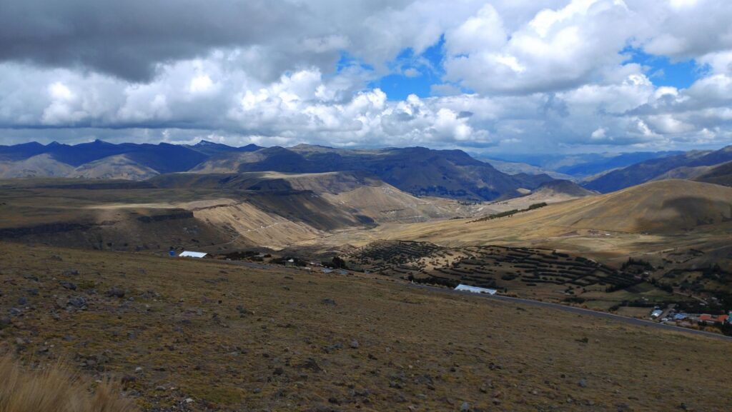 Dann waren wir draußen und es ging auf einer super ausgebauten Asphaltstraße weiter, teilweise auf über 4000 m. Schöne weite Kurven und Serpentinen. Gut zu fahren bloß etwas frisch, also noch die Regenjacken überziehen.