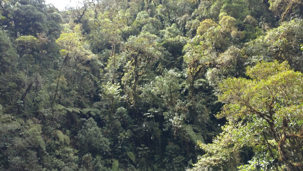 Dann kam der sogenannte Bergregenwald, oder im übertragenen Sinne der Bergdschungel. Zwar nicht mit der gleichen Vegetation wie der „Tieflanddschungel“ aber ähnlich undurchdringlich.