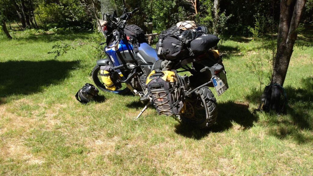 Bis zur Grenze müssen wir noch 40 km Ripio-Piste arbeiten und dann klappt es Recht schnell mit den Grenzformalitäten, sogar der Gemüsemann ist entspannt. Dann noch 15 Minuten bis Futaleufu und beim 4. Versuch haben wir auch eine schöne Unterkunft. Da es noch Recht früh ist basteln wir noch ein bisschen an den Moppeds und dann legen wir uns kurz (haben wir gedacht) hin. War aber nicht so, erst gegen halb sechs sind wir wieder aufgewacht.