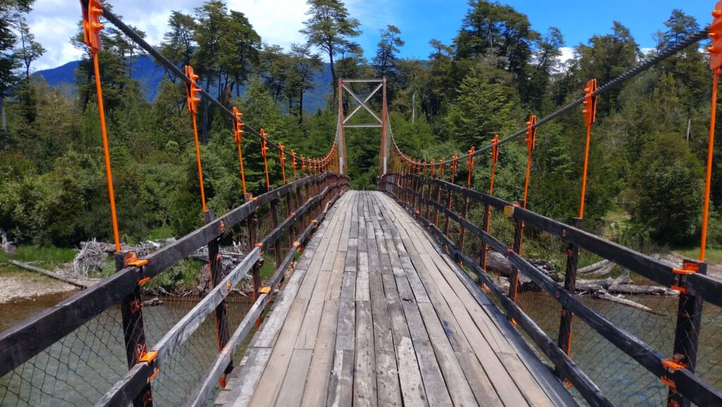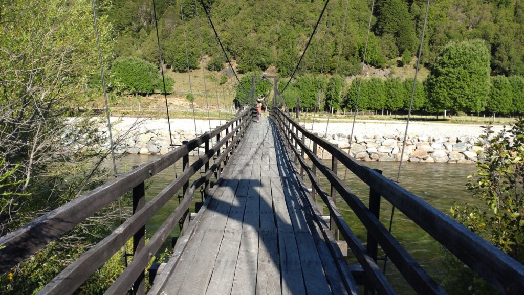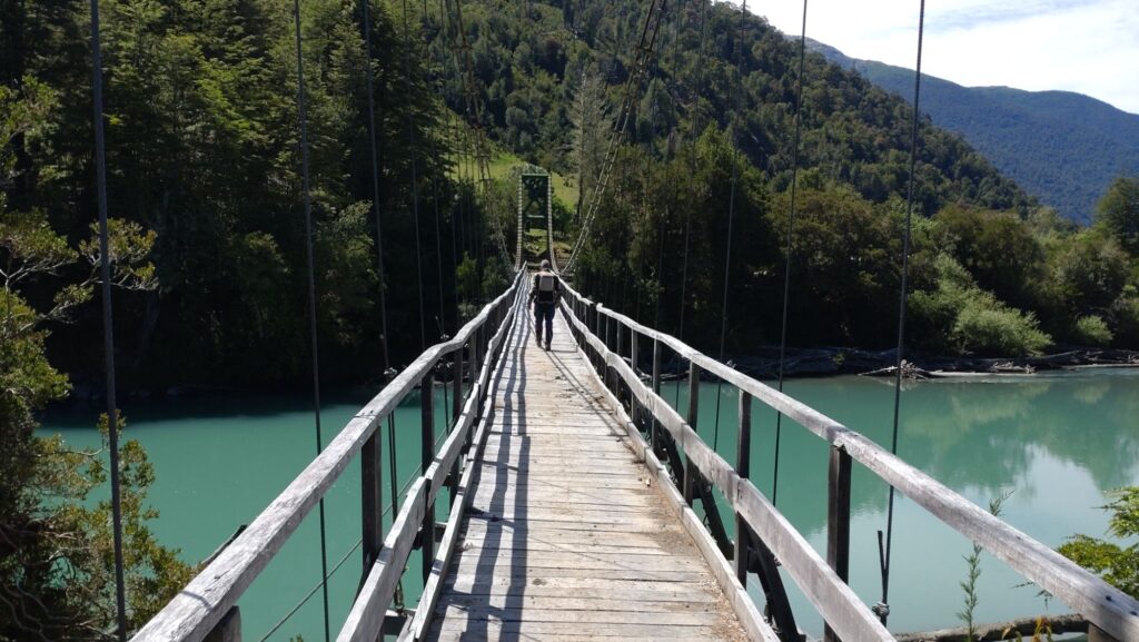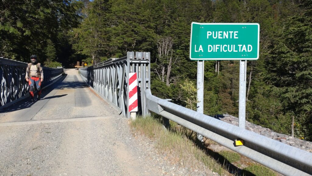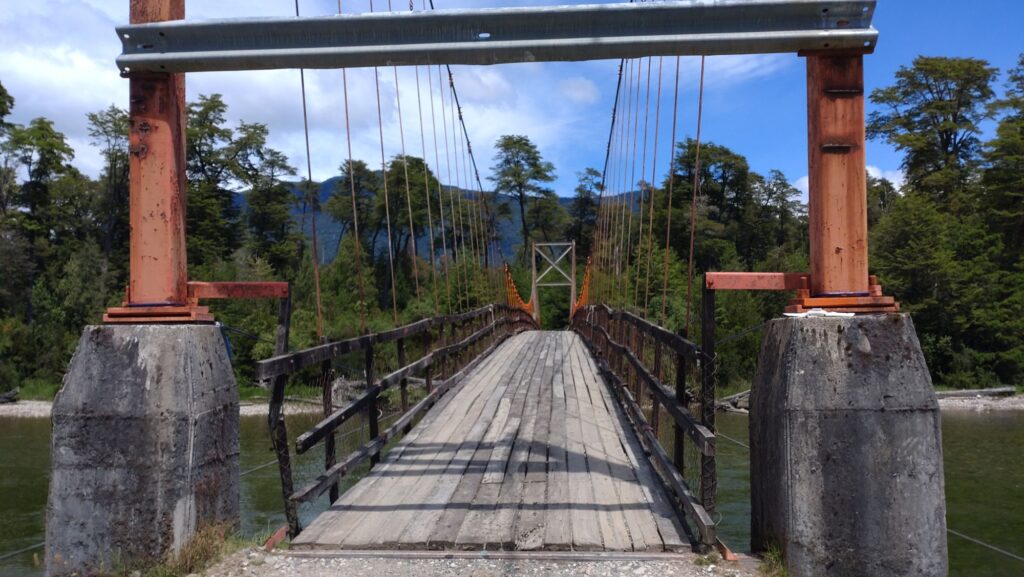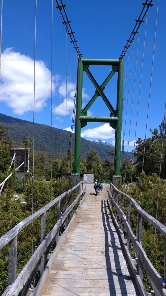 Tobias hat gestern beim Brainstorming ein paar interessante Brücken ausgemacht und dazu einige Straßen mit dem X vorweg. Das wäre schon ziemlich cool finden wir. Also wird der Kurs abgesteckt und wir düsen los. Ziel für heute ist der Ort Puerto Raul Marin Balmaceda, ein kleines Örtchen versteckt an der Pazifik-Küste. Doch zuerst geht es von Futaleufu gen Carretera Austral. Dazu eben die einzelnen Brücken anfahren und bewundern bzw. befahren.