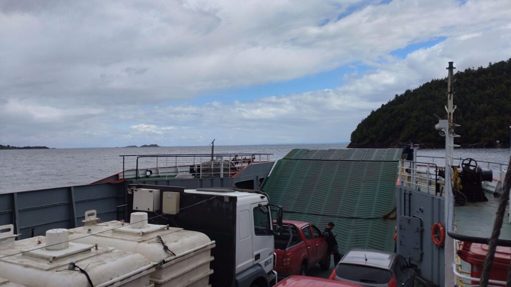 Doch erst einmal wird die Carretera Austral bis Puerto Mont, ihrem Anfang abgefahren. Es geht auf bestem Asphalt zur letzten Fähre der Carretera, für 30 Minuten geht’s über den Meeresarm und dann weiter zur Costanera von Puerto Mont. Dort soll irgendwo der Kilometer „Null“ sein.