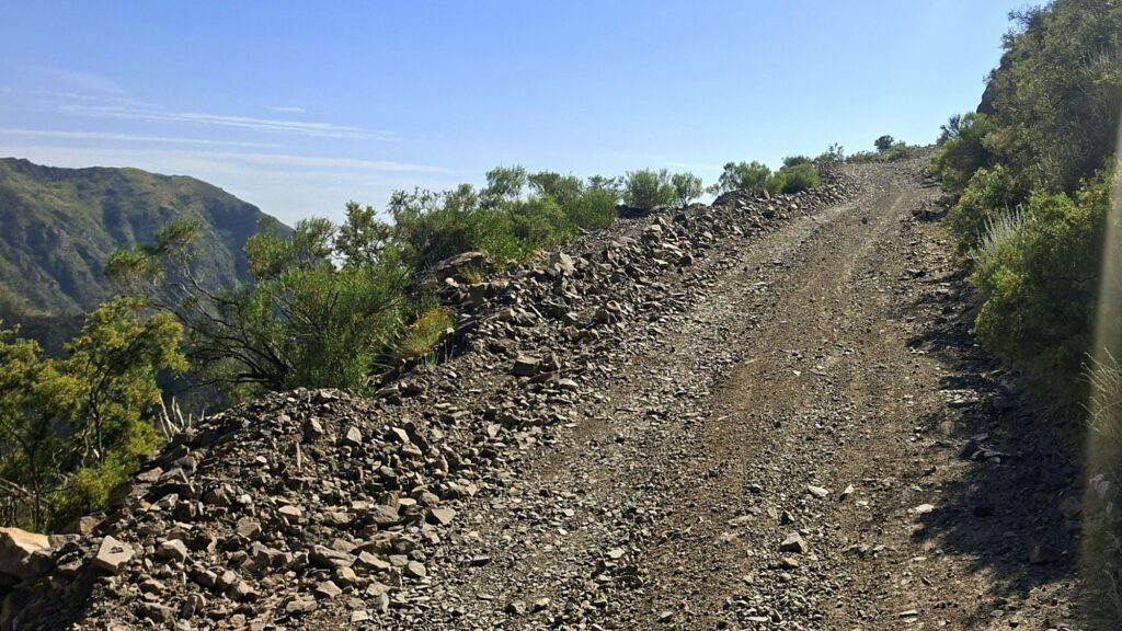 Dann kommt eine Auffahrt, und die hat es in sich. Steil und voll mit losen Geröll. Zahlreiche enge Kehren und gut 4 Kilometer lang. Action!