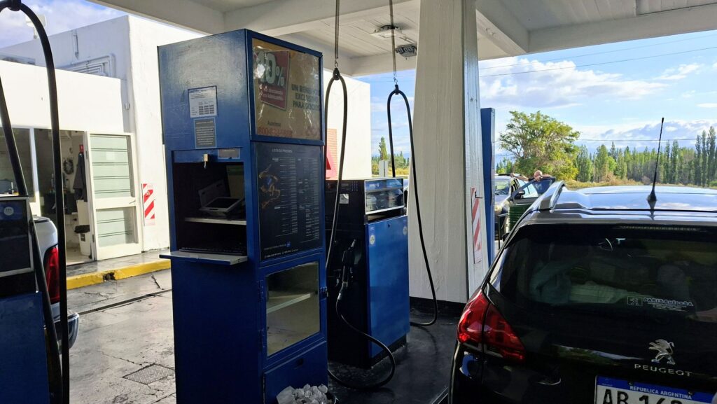 Im Ort Tanken und dann geht es rechts den Pass hoch nach Chile. Die Überfahrt über die Anden ist hier übrigens 170 Kilometer lang.