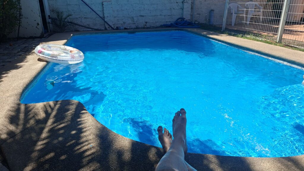 Und nach 70 weiteren Kilometern war ich dann am Ziel dieser Etappe. Entspannte 35 Grad hat es hier unten. Erst mal in den Pool.