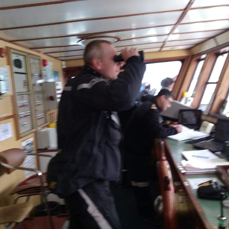 Die restlichen zwei Stunden verbringe ich auf der Brücke und werde in Nautik eingewiesen. Die anderen Fahrgäste blicken von draussen ungläubig rein.