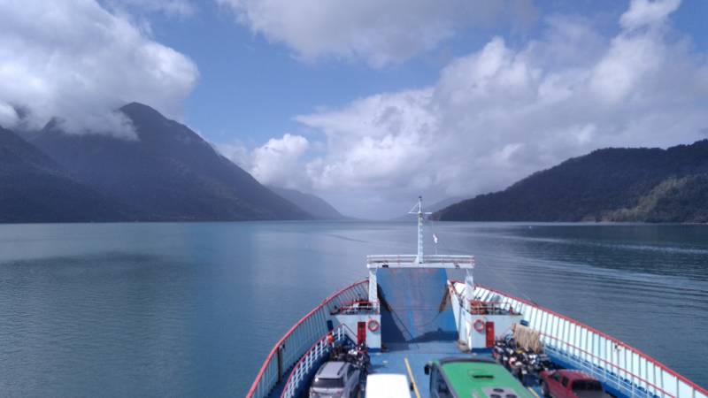 Dann nochmal 40 Minuten Fähre. Ich unterhalte mich mit einem deutschen Ehepaar, die mit einem gemieteten Camper nach Ushuaia wollen und dann mit dem Schiff weiter in die Antarktis.
