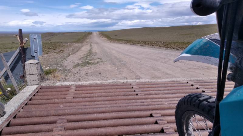 Dann biege ich Richtung Chile ab. 70 Kilometer Piste. Der Wind kommt von schräg vorne. Geht so halbwegs, auch wenn es mich zweimal in eine tiefe Schotterspur verbläßt und ich etwas ins Schwitzen komme. Dann überholt mich ein Pickup. Er hat bestimmt 80 drauf. Als er wieder einschert, bricht die Fuhre hinten aus. Jetzt geht es für ihn direkt auf den rechten Graben zu. Nur durch meisterliches Fahrkönnen fängt der Mann kurz vor dem Graben die Kiste ab. Noch ein paar Schlinger und weiter bahnt er sich seinen Weg. Später kommt mir ein Fahrradfahrer entgegen. Ich denke dass er anhält und reden möchte und bremse. Aber nein, er kommt auf der holprigen Piste und dem Wind so schlecht und langsam voran, dass es nur so aussieht als würde er anhalten.