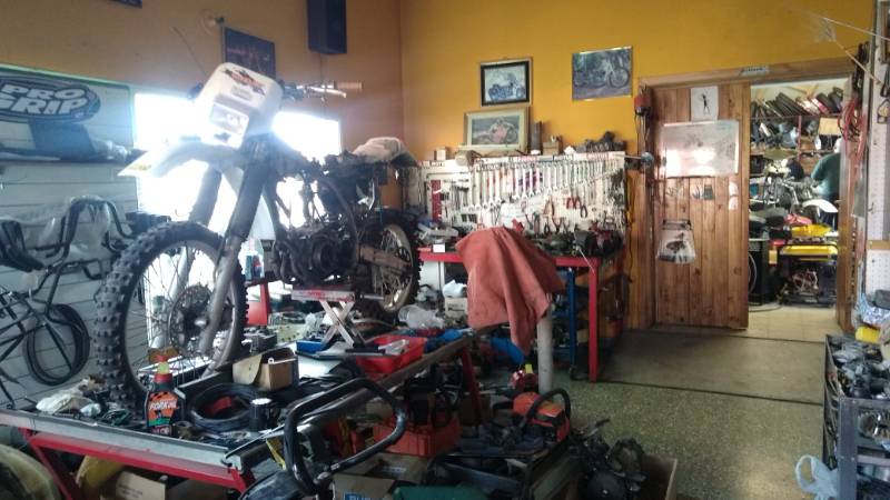 Dann tauchen zwei Australier auf. Die warten auf Teile aus Buenos Aires. Die sind aber noch nicht da. Dennoch hängen sie erst mal in der Werkstatt ab. Alle reden kreuz und quer durcheinander. Mal kommt ein Kunde, dann wieder über die Route, über die Ersatzteile, mein Gepäck … Richtig super, ne echte Schrauberbude. Hab ich bisher vermisst.