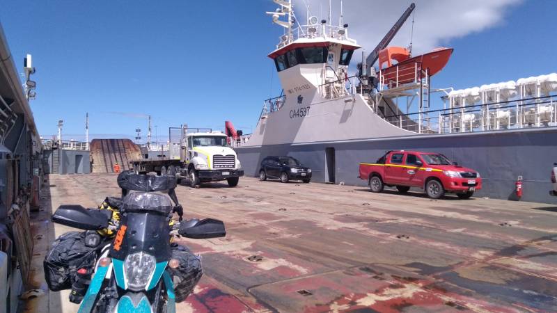 Um weiter in Richtung Norden zu kommen nimmt die Straße einen recht interessanten Verlauf. Ich muss für ein paar Kilometer und eine Fähre nach Chile einreisen, um dann in Argentinien weiter fahren zu können. Anders geht es nicht.