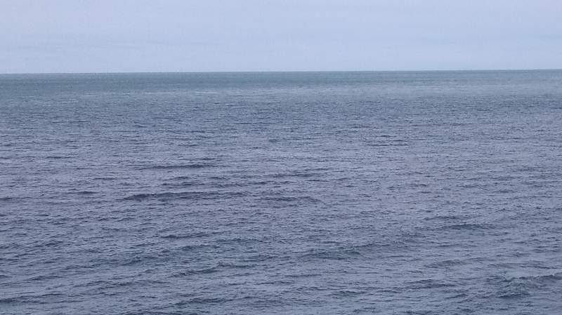 Ehrlich gesagt würde ich mich aber auch nicht ins Wasser trauen. Vor der Küste schwimmen Orcas auf und ab. Wir können sie 30 Minuten beobachten bevor sie verschwinden. Auf den Fotos leider nicht zu sehen.