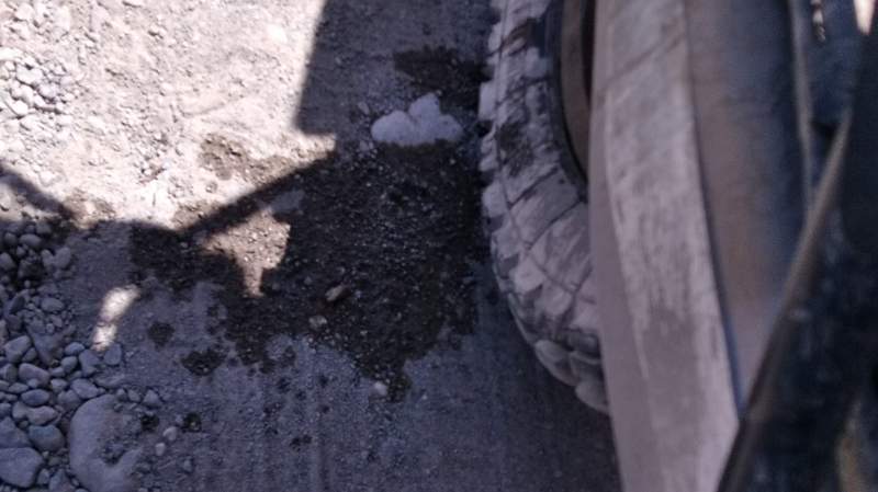 Eine Inspektion ergibt, alles halb so schlimm, ist nur eine Wasserflasche, die das Gerüttel nicht überlebt hat. Jetzt dient sie der Erfrischung.