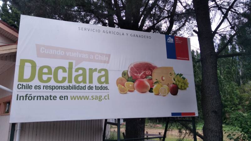 Geht auch wieder schnell. Der „Warenüberprüfungsmann“ will nur in eine Tasche sehen. Am wichtigsten ist ihm, dass ich kein Obst dabei habe. Er fragt gleich drei Mal nach. Das Obst aus Argentinien scheint extrem gefährlich zu sein.