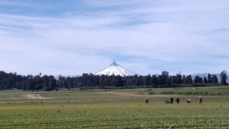 Es braust sich gut mit neuem Hinterreifen und sauberem Luftfilter. Es geht wieder Richtung Argentinien. Die Strecke bin ich schon in die andere Richtung gefahren. Allerdings hab ich da den Vulkan gar nicht bemerkt. So geht es eine Stunde lang, immer den Vulkan im Blick, Richtung Grenze.