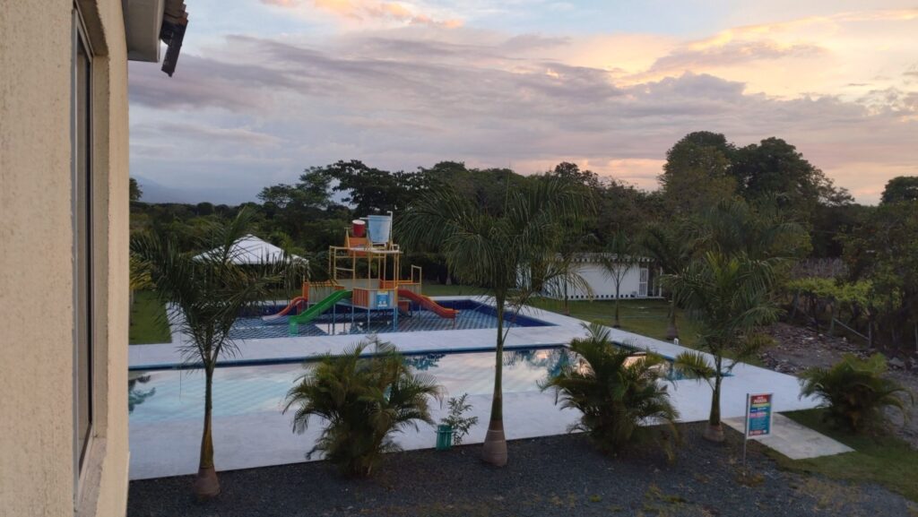 Aber was soll’s, wir mussten weiter und genossen trotzdem die Fahrt durch die schöne Gegend un dadurch Berg- und Tal. Allerdings haben wir beschlossen, dass wir erst wieder auf der Autobahn anhalten um zu Essen. Als wir dann die Autobahn erreichten war da auch gleich eine kolumbianische Raststätte. Nach dem Essen haben wir uns noch ein schönes Hotel gebucht. Weiter ging’s durch die Ebene bei fast angenehmen 33°.