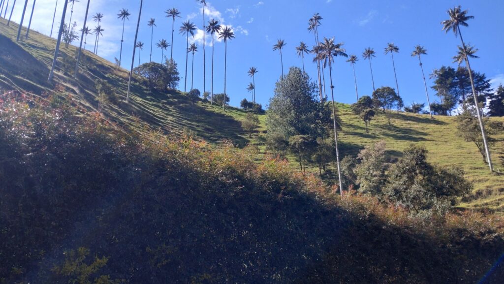 Unten im Tal war es schon sehr touristisch, links und rechts Restaurants aber zu Glück war es noch keine neun als wir dort ankamen. Der Ort Salento selber war Recht nett und die Straße dann rauf zum Parkplatz war wieder wunderschön, ebenso die Landschaft. Kurz vorm Parkplatz war dann schon ein bisschen Disney World, aber wir gesagt wir waren vor dem Sturm da;-) Wir durften sogar umsonst auf den Parkplatz, aber nur cinco Minutas… Das reichte für die Bilder und das zerstören von meinem Brillengestell. Ersatzbrille raus und weiter geht’s wieder zurück auf die Autobahn.