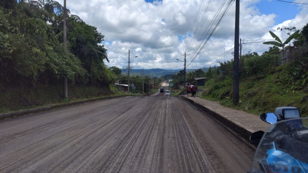 Aus der Stadt ging es schnell heraus, allerdings sah vieles doch etwas anders aus als in Kolumbien. Irgendwie alles etwas in die Jahre gekommen, so als ob die beste Zeit schon länger perdu war. Die Straße war okay und ging durch eine Kulturlandschaft, sprich Plantagen, Weiden, kleine Örtchen und immer wieder Dschungelabschnitte.