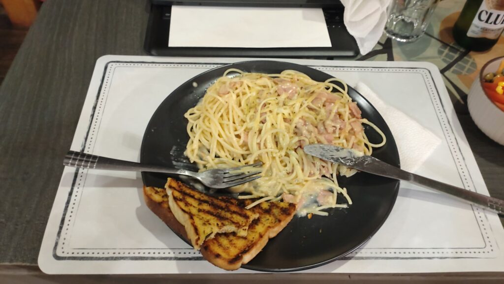 Ansonsten chillten wir bei Bier am Pool und genossen den Tag. Dachten über die weitere Planung nach und genossen einfach den Nachmittag im Dschungel. Es gab auch Abendessen, Spaghetti Carbonara, Salat und zum Abschluß Pfannkuchen mit Pradiesfruchtsoße. Einfach lecker!