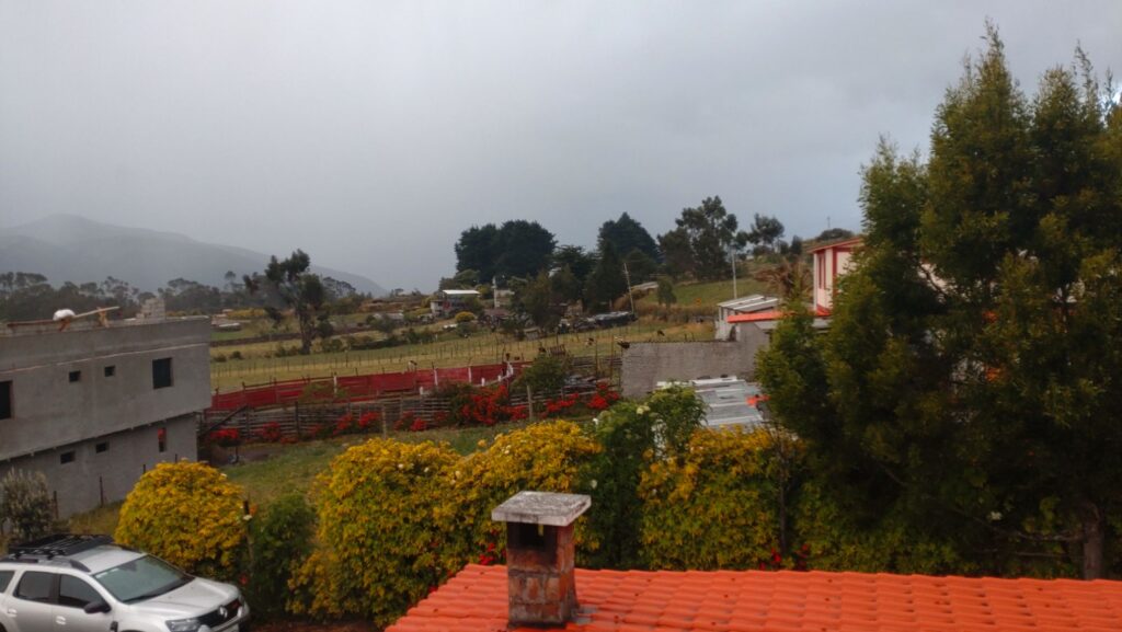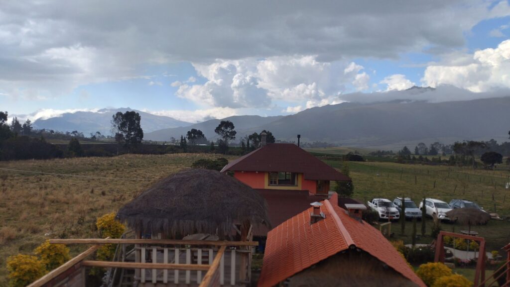 Wir tanken noch einmal ein bisschen Sprit nach für Morgen und dann wird noch einmal eine kurze Pause an einem Kiosk gemacht. Die Pause fällt dann länger aus, weil wir einen ordentlichen Regenschauer abwarten wollen. Nach ner guten halben Stunde geht’s weiter zum Tagesziel, einem kleinen Hotel mit Restaurant auf rund 3500 m Höhe kurz vorm Eingang zum Nationalpark vom Cotopaxi. Da wollen wir nämlich Morgen hoch fahren.