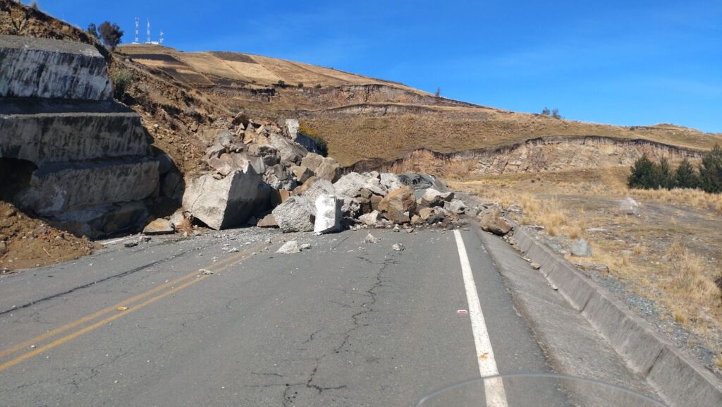 Bei Zumbagua bogen wir dann auf die Nebenstrecke nach Simiatug über Angamarca ab. Kurz nach dem abbiegen trafen wir auf der erst große Hindernis, die Straße war verschüttet.