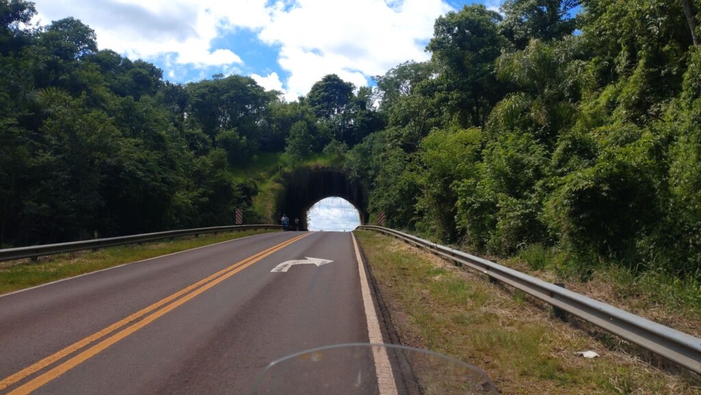 Der ist insofern untypisch, weil er mitten in der Stadt liegt und auf brasilianischer Seite die Migration weit ab vom Übergang liegt. Argentinien ist schnell erledigt, die Aduna Brasiliens dauert, weil hier so wenige Reisende vorbei kommen. Die Grenzer müssen sich erst mühsam durch das TIP Dokument arbeiten. Bei mir geht es dann etwas schneller. Dann auf zur Migration. Der Weg ist gut ausgeschildert und es geht schnell, ist halt einfach nur die Pässe stempeln und Daten einlesen.
