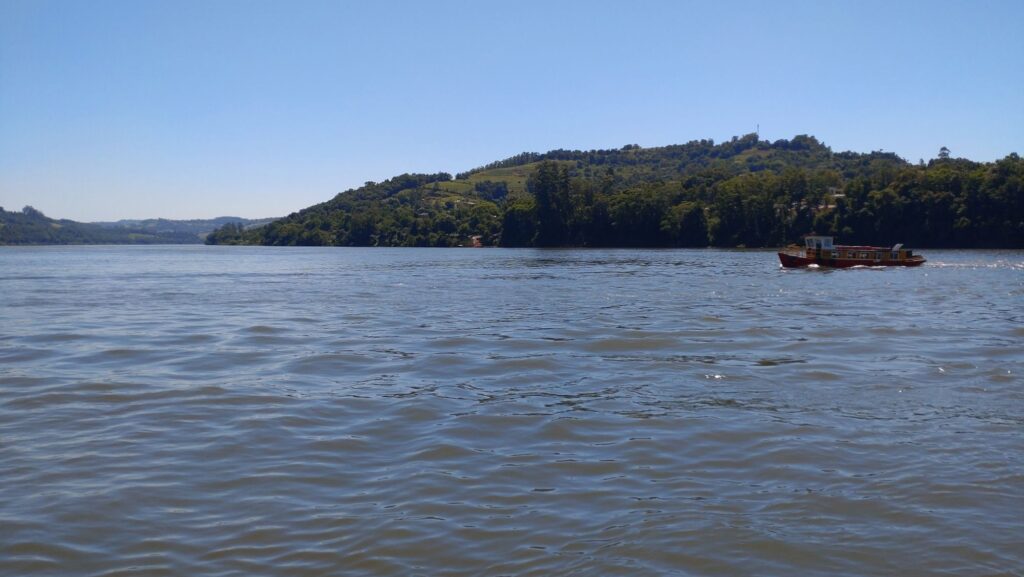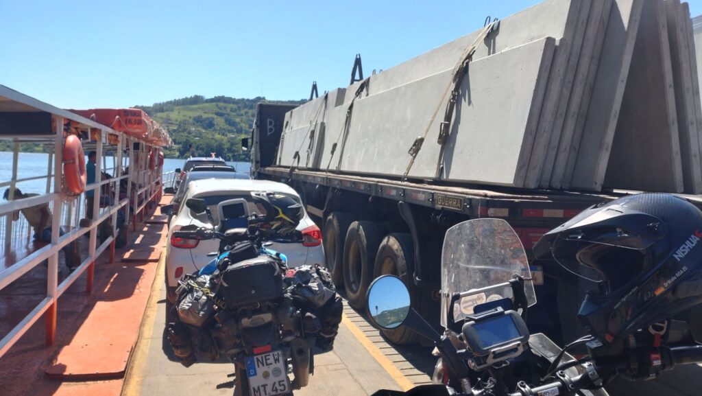 Am nächsten Tag ging es dann weiter gen Süden, zunächst Teer, Dann ein bisschen Piste und schließlich mit der Fähre über den Rio Uruguay, der hier oben schon Recht breit war.