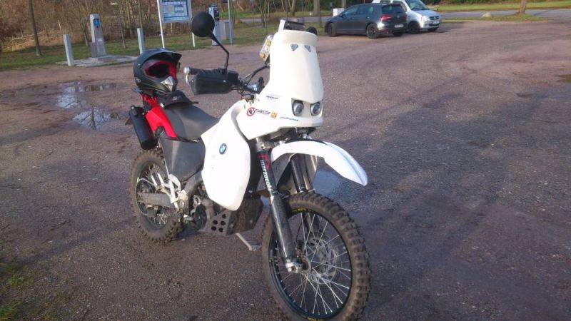 Komplett fernreisefertig aufgebaut, der große Tank und die Verkleidung von Touratech, Exel-Felgen, diverse Hardparts und ein Werkzeugfach. Das Ganze für gut 6000,- €! Ich brauchte nur noch einen neuen Vorderkotflügel und ein Trägersystem kaufen. Nachdem ich mittlerweile etliche Kilometer mit ihr sowohl on- als auch offroad unterwegs war bin ich sehr zufrieden und bin mir sicher, das richtige Mopped ausgewählt zu haben.